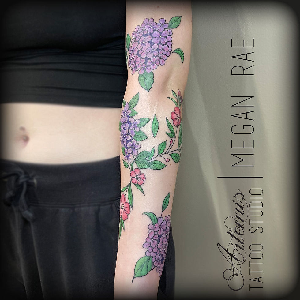 Megan has been tattooing since 2014. She wants to focus on styles that include lady faces, watercolor, and illustrative designs. She appreciates going out of her comfort zone with new projects as well. Megan has worked with a variety of mediums in her artwork outside of the tattoo shop. She uses these skills and experiences and applies them to her tattooing.